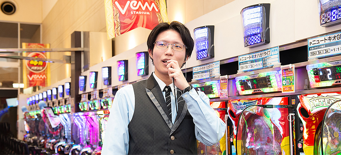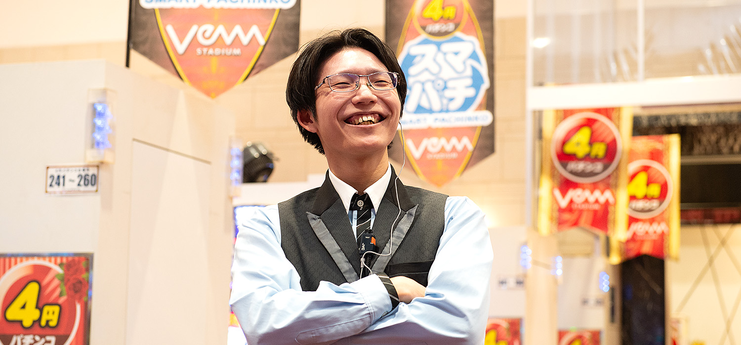 やる気を正しく評価してくれる明確な基準があり、挑戦する姿勢を大切にしてくれる社風に惹かれました。全国的にパチンコ業界が厳しい中でも、現状を打破し前向きに成長を続ける姿に強く共感しました。